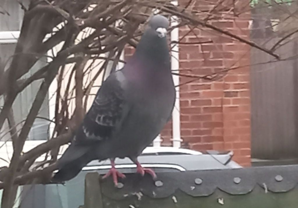 The male pigeons are busy turning in circles on Beccy’s roof, trying to impress the females. Nothing unusual there in spring, but surely the one I heard this morning calling “Chaka Khan” took the wooing to a whole new level. I’m not sure it was this one, but the iridescent neck feathers caught my eye.