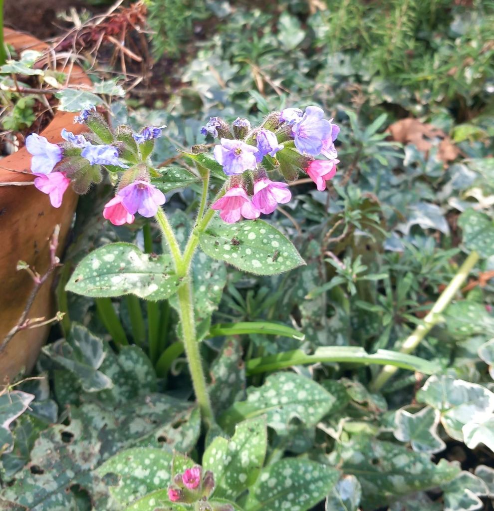 A few days ago, when we still had the sun, I was idly wondering if the hairy-footed flower bees were about. They’re among the first bees in my garden, with the gingery males flying around two weeks before the black females. And yes, I was in luck. I spotted two tearing around the rosemary and lungwort. Too fast for me to get a photo, but here are the flowers that bring them in.