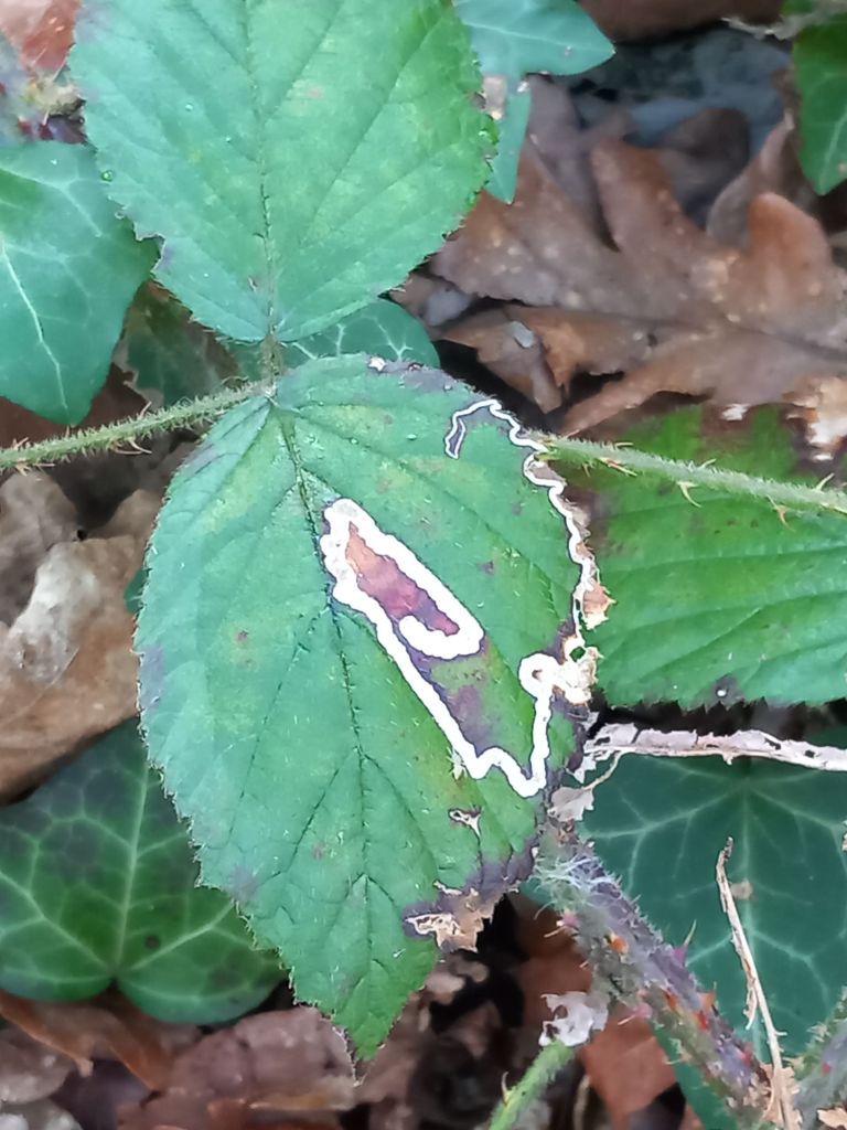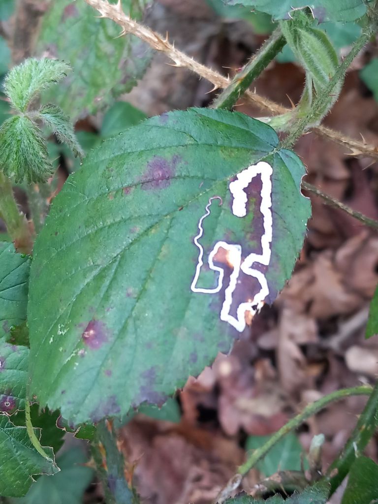 Bramble leaves are decorated with the mysterious scribblings of leaf miners.